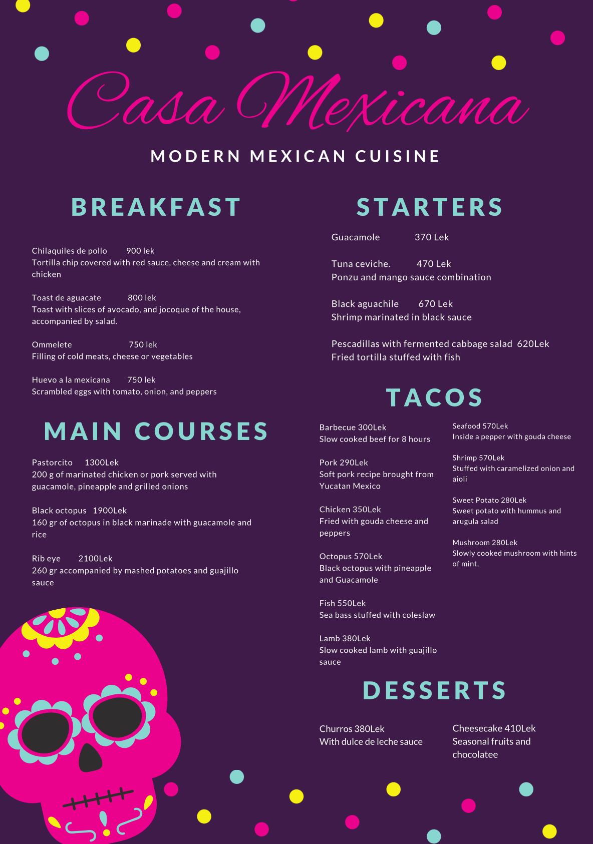At Casa Mexicana in Ksamil, our appetizers are a vibrant celebration of Mexican flavors and local ingredients. From crispy nachos piled high with melted cheese, jalapeños, and tangy salsa, to savory quesadillas oozing with melted cheese and flavorful fillings, each dish is a perfect prelude to your main course.